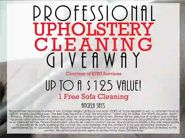 Oh by the way, I’m doing another giveaway, courtesy of KIWI Services! This week I’m giving away an upholstery cleaning of up to $125 and all you have to do is leave a comment and live in Dallas, Houston, Fort Worth, Austin, Atlanta, Phoenix or Denver metro area. The giveaway ends on 10/30/14 and the winner will be contacted by KIWI Services and announced here on the blog.