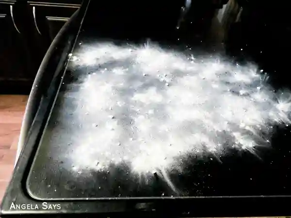 Step 5: Realize that cleaning with baking soda creates it’s own mess and wipe up as much of it as you can.