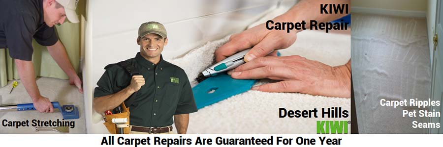Desert Hills Carpet Repair professionals at KIWI are trained in identifying a variety of carpet problems ranging from carpet cleaning to carpet stretching and repairing general wear and tear in your home or business. and providing a quality of service that is backed by our 1 year carpet repair guarantee. KIWI’s carpet repair team can handle any job, from bulging and burns to snags and permanent stains and even more complex Desert Hills Berber repair. KIWI is also a well known Phoenix carpet repair company specializing in pet damage.