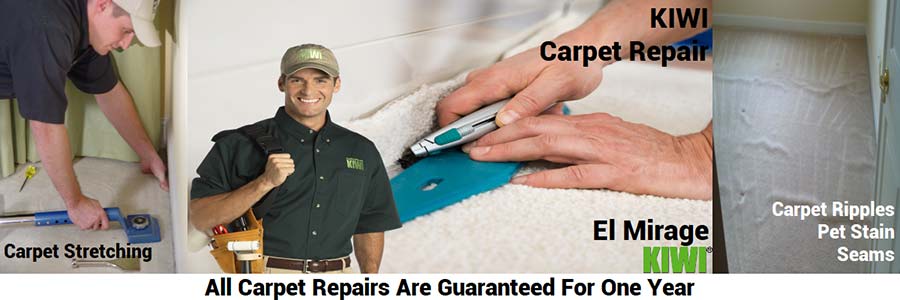 El Mirage carpet repair and cleaning services offered by KIWI are the best in the business. Offered by an industry-leading company, administered by highly-skilled technicians, and backed by KIWI’s One Year 100% Repair Guarantee, it’s clearly and highest-quality service available to El Mirage residents, and at a great price. Whether you need Berber repair for more complex weaves, a quick fix of damaged carpet from general wear and tear or pet damage in your home or business, carpet cleaning, or just a little carpet stretching, KIWI is the trusted company to call. We are an experienced Phoenix carpet repair company.