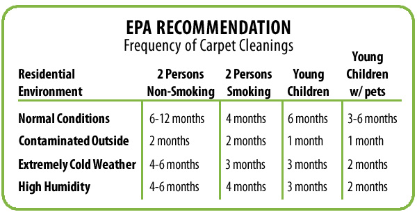 EPA carpet cleaning recommendations made affordable with our exclusive one year carpet cleaning warranty