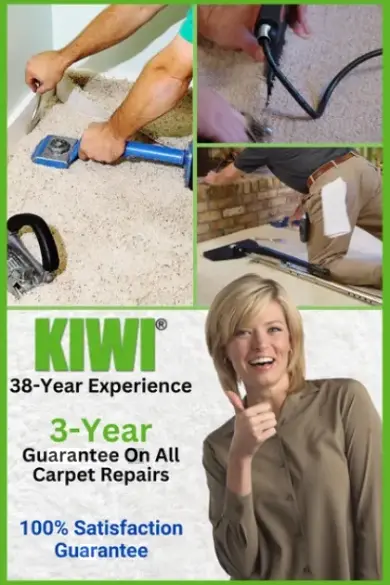 We want to ensure that you are 100% satisfied with the quality provided, which is why we give you a 3–Year unconditional guarantee on all carpet repairs. If any of our repairs needs further attention, KIWI will return and provide a complimentary re-do. KIWI also offers our one-year carpet cleaning warranty that allows you to get your carpets cleaned for just $4 a room all year. We’re the company for you if you need carpet repair and cleaning.